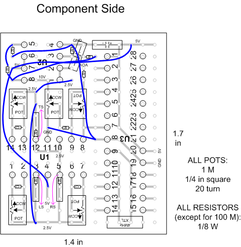 Either circuit can be made to fit onto small component PC boards, Radio Shack 276-149 or 276-147 boards cut to size. See Figures 18 and 19 for example PC board layouts.