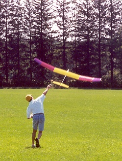 Mark demonstrates winch launching technique for the Allegro-Lite. Once you look at the fuselage plan and think about holding the Allegro-Lite, you’ll quickly realize that the low “wetted area” of the fuse leaves very little to hold on to during launch!